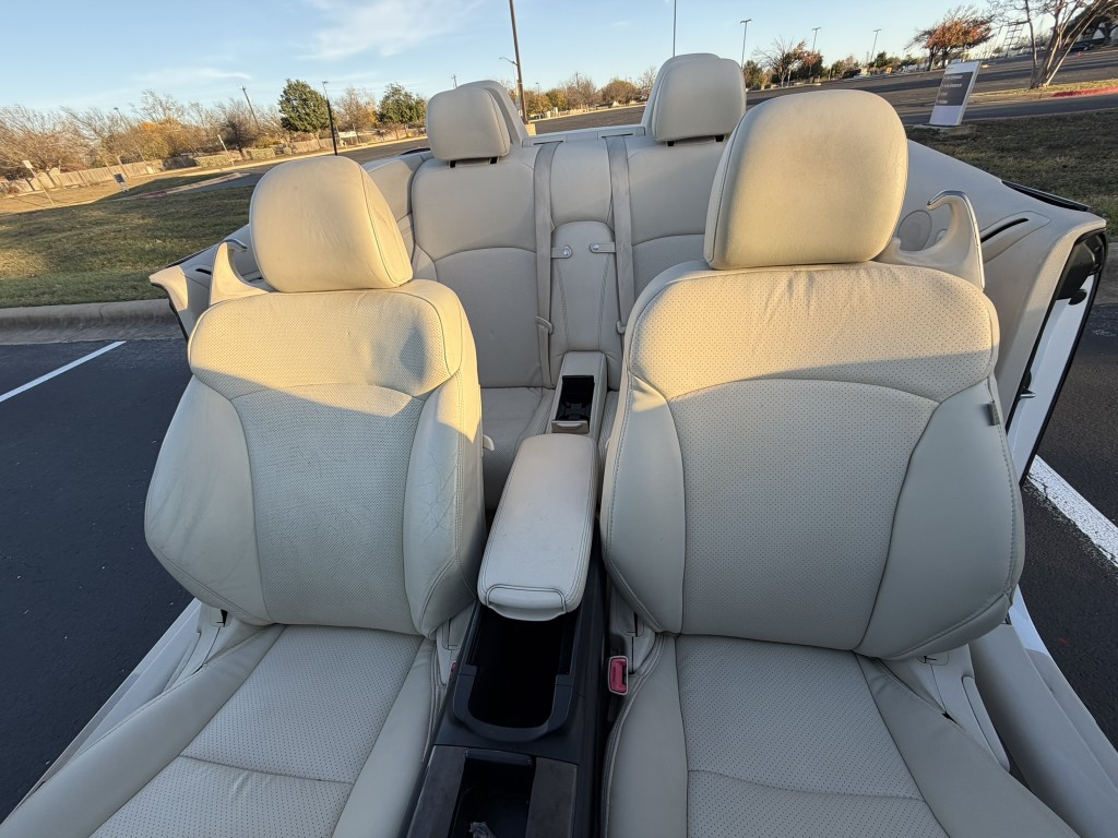 Off white leather seats. Interior is also very clean. All seats have no stain, tear or rip. Hardtop convertible opens and close electronically.