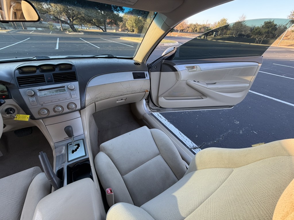 - Tan cloth seats. Interior is also Clean and all seats have no stain, tear or rip. There are some hairline cracks on the dashboard.