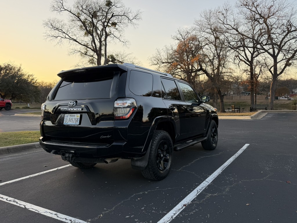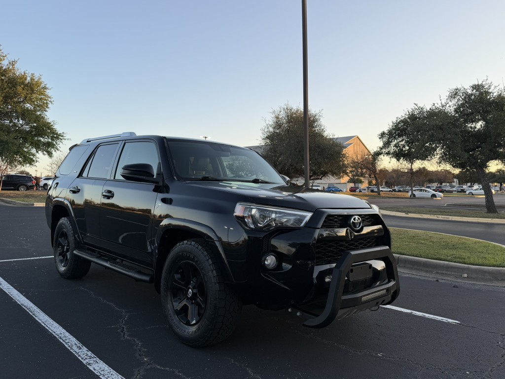 - Black Color. Paint and body is almost perfect 8 out of 10, without any significant damages. However, there may be some very minor dings and scratches as expected from a used vehicle. All-Terrain tires are in very good. No Rust. With Black rim and silver roof racks, Front grill guard, this SUV looks pretty good.
